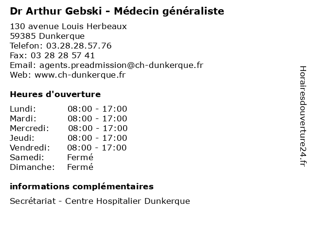 1 Le Mc Arthur (Distance: 2,01 km) 8 Rue Belle Vue, 59140 Dunkerque arthur, brasserie, le, mc, restaurant de viande, restaurant français, shopping. 3 Dr Arthur Dehondt - Médecin généraliste (Distance: 19,70 km) 540 Route de Merckeghem, 59470 Bollezeele arthur, dehondt, docteur, dr, generaliste, généraliste, medical, médecin, soin 4 École Primaire Publique Arthur Cornette (Distance: 48,86 km) 446 Rue Armentieres, 59850 Nieppe arthur, cornette, cours, education, primaire, publique, services, école 5 Dr Arthur Vaksmann - Cardiologue (Distance: 51,80 km) 38 Rue Bayart, 59280 Armentières arthur, cardio, cardiologie, cardiologue, coeur, dr, vaksmann 6 Dr Arthur Decrequy - Médecin généraliste (Distance: 57,96 km) 29 bis Rue de Verdun, 59249 Aubers arthur, decrequy, docteur, dr, generaliste, généraliste, medical, médecin, soin |