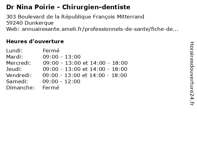 | Jeudi | 09:00-13:00 et 14:00-18:00 |
