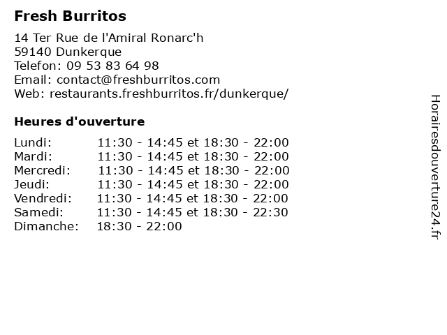 | Mardi | 11:30-14:45 et 18:30-22:00 |