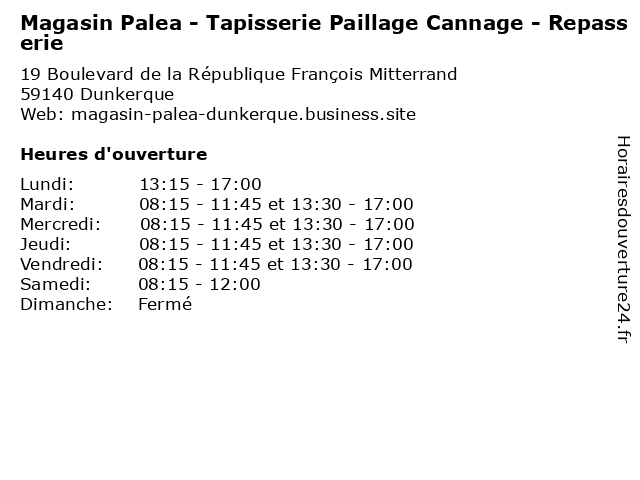 | Mardi | 08:15-11:45 et 13:30-17:00 |