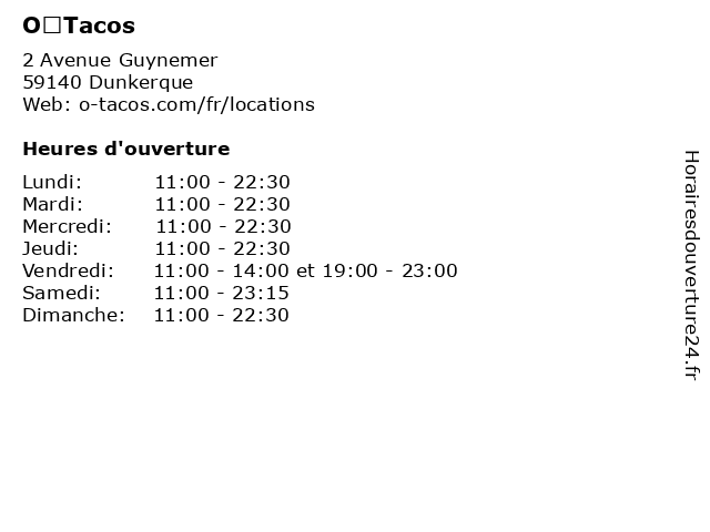 | Vendredi | 11:00-14:00 et 19:00-23:00 |
