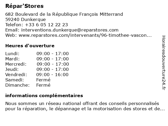 1 Monsieur Store (Distance: 3,60 km) 53-55 boulevard Sainte-Barbe, 59140 Dunkerque fenetres, monsieur, pergolas, store, stores d'intérieur, volets roulants 3 Monsieur Store (Distance: 7,90 km) - Rue du Commerce, 59180 Cappelle La Grande fenetres, monsieur, pergolas, portails, store, stores interieur, volets 4 5 Lionet Décor (Distance: 35,66 km) 3 Avenue Jean-Marie Jacob, 59190 Hazebrouck acessoires, deco, décor, lionet, magasin, murs, stores, tissus 6 Novastyle (Distance: 39,48 km) n/a Z.A. La Porte du Littoral, 62500 Leulinghem acessoires, deco, magasin, murs, novastyle, stores, tissus |
