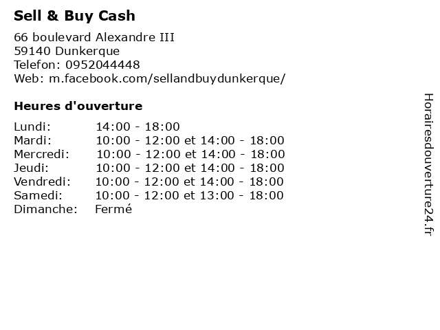 | Samedi | 10:00-12:00 et 13:00-18:00 |