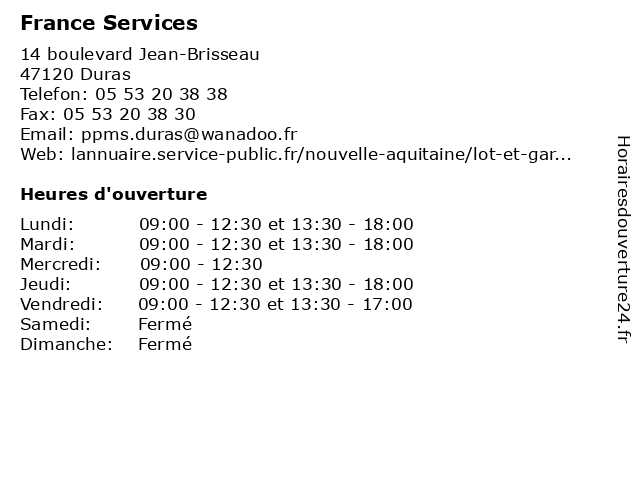 Termes de recherche pour France Services:de, au, administration, services, france, maison, duras, public, publics, organismes |