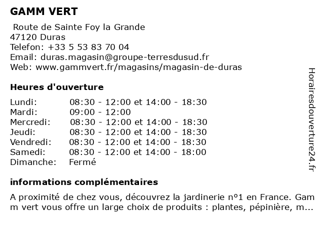 | Lundi | 08:30-12:00 et 14:00-18:30 |