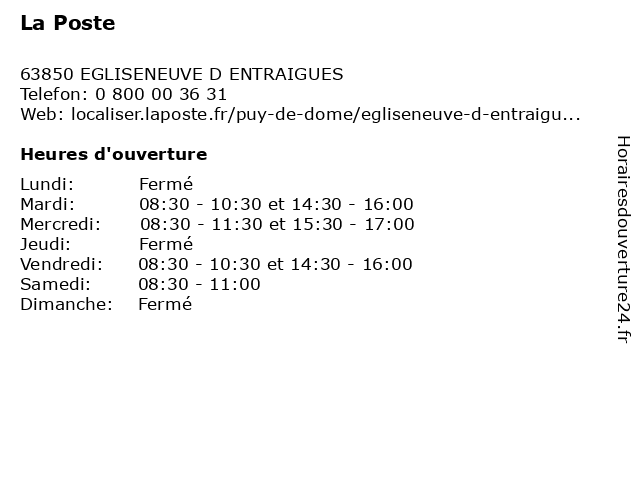 1 La Poste (Distance: 0,15 km) - Le Bourg, 63113 Picherande colis, express chronopost, expédition, la, poste, réexpédition internationale, service, suivi du courrier 2 La Poste (Distance: 0,18 km) - Le Bourg, 63850 Egliseneuve d Entraigues colis, express chronopost, expédition, la, poste, réexpédition internationale, service, suivi du courrier 3 La Poste (Distance: 8,94 km) 1 Place Marie Aimée Méraville, 15190 Condat agence, colis, courriers, expédition, la, postale, poste, relais 4 La Poste (Distance: 12,82 km) - Le Bourg, 15400 Menet agence, colis, courrier, expédition, la, postale, poste 5 La Poste (Distance: 12,83 km) Le Bourg, 15400 Saint-Étienne-de-Chomeil agence, assurance, banque, banque postale, bureau de poste, chronopost, colis, courrier, dps, expéditions internationales, la, point, postale, poste, relais, timbres, téléphonie, ups, western union 6 La Poste (Distance: 13,14 km) - Le Bourg, 63950 Saint-Sauves-d'Auvergne colis, express chronopost, expédition, la, poste, réexpédition internationale, service, suivi du courrier |
