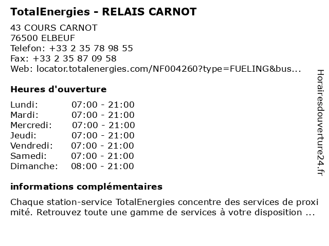Termes de recherche pour TotalEnergies - RELAIS CARNOT:relais, carnot, total, gas station, station service, tankstelle, totalenergies |