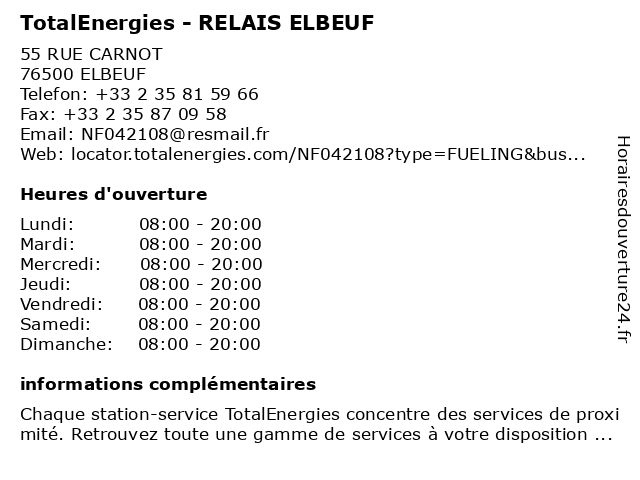 Termes de recherche pour TotalEnergies - RELAIS ELBEUF:relais, elbeuf, total, gas station, station service, tankstelle, totalenergies |