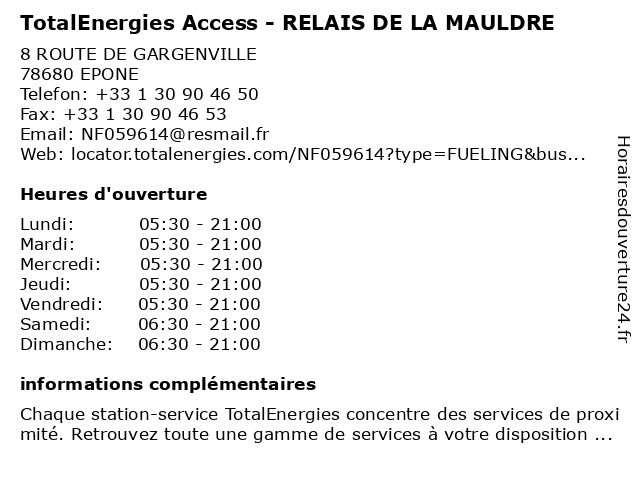 | Samedi | 06:30-21:00 |