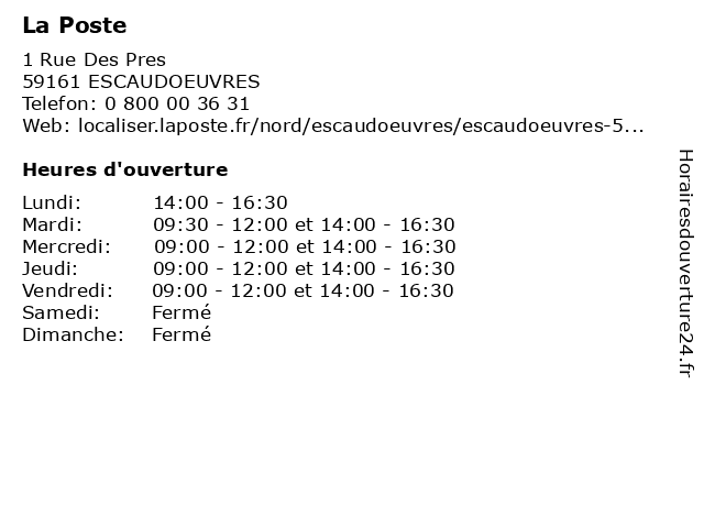 2 La Poste (Distance: 4,97 km) 858 Route d'Arras, 59554 Raillencourt-Sainte-Olle colis, express chronopost, expédition, la, poste, réexpédition internationale, service, suivi du courrier 3 La Poste (Distance: 5,71 km) 23 Rue Gilbert Betrancourt, 59295 Paillencourt colis, express chronopost, expédition, la, poste, réexpédition internationale, service, suivi du courrier 4 La Poste (Distance: 5,89 km) 22 Grand Rue, 59268 Abancourt colis, express chronopost, expédition, la, poste, réexpédition internationale, service, suivi du courrier 6 La Poste (Distance: 8,22 km) 258 rue Charles Gide, 59281 Rumilly-en-Cambrésis agence, assurance, banque, banque postale, bureau de poste, chronopost, colis, courrier, dps, expéditions internationales, la, point, postale, poste, relais, timbres, téléphonie, ups, western union |
