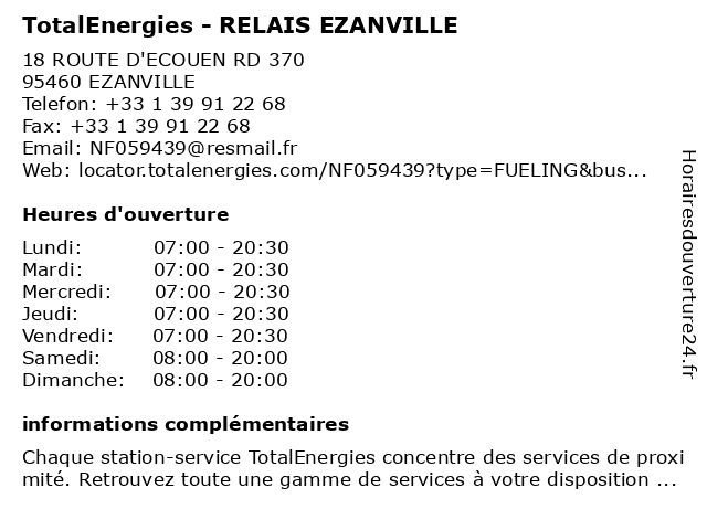 Termes de recherche pour TotalEnergies - RELAIS EZANVILLE:relais, total, gas station, ézanville, station service, tankstelle, totalenergies |
