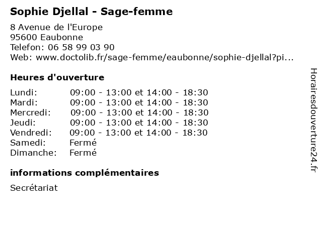 | Lundi | 09:00-13:00 et 14:00-18:30 |