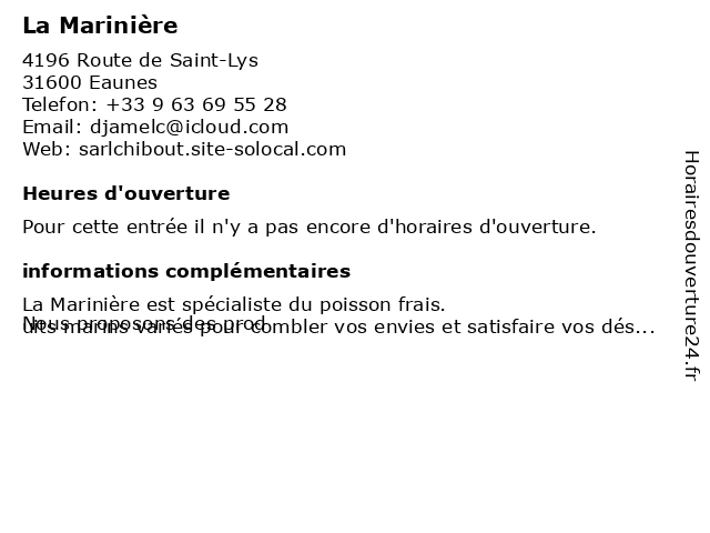 1 La Marinière (Distance: 12,74 km)49 bis Avenue des Pyrénées, 31120 Lacroix-Falgarde la, marinière