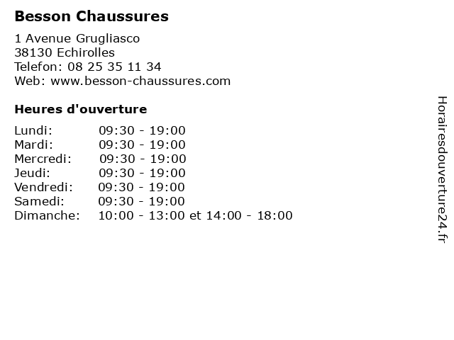 1 Besson Chaussures (Distance: 7,39 km) - Lot de l'Ile Brune, 38120 Saint-Egrève besson, chaussure, chaussures, magasin, services 2 Besson Chaussures (Distance: 19,41 km) 299 Avenue Ambroise Croizat, 38920 Crolles besson, chaussures, enfants, homme, mode femme 3 Dr Gérard Besson - Chirurgien-dentiste (Distance: 1,27 km) 4 Avenue des F T P F, 38130 Échirolles besson, chirurgien, dentiste, dr, gérard, médecin, médecine, médical, pharmaceutique, traitement 4 Les Transports Besson (Distance: 2,88 km) - Rue Gustave Flaubert, 38100 Grenoble besson, les, routier, société, transport, transports 5 Maître Laurence Besson-Mollard - Avocate (Distance: 4,21 km) 34 cours Jean Jaurès, 38000 Grenoble avocate, avocats, besson, civils, droits, juridiques, laurence, maître, mollard 6 Cabinet Besson Immobilier (Distance: 4,28 km) 23 Boulevard Gambetta, 38000 Grenoble agence, besson, cabinet, gestion, immobilier, location, vente |
