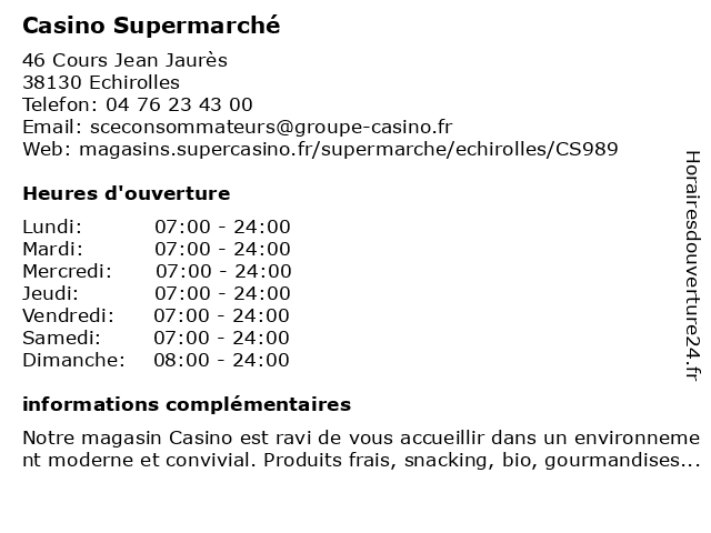 1 Casino Supermarché (Distance: 2,95 km) 24 Rue de la Fauconnière, 38170 Seyssinet-Pariset alimentaire, alimentation, casino, courses, supermarche, supermarché, épicerie 2 Casino Supermarché (Distance: 3,24 km) 24bis Boulevard Joseph Vallier, 38000 Grenoble alimentation, boisson, casino, supermarché, épicerie 3 Casino Supermarché (Distance: 11,11 km) . Rue du 8 Mai 1945, 38450 Vif alimentation, boisson, casino, supermarché, épicerie 4 Casino Supermarché (Distance: 13,78 km) - route Départementale 523, 38420 Le Versoud casino, hypermarche, magasin, services, supermaché, supermarche, supermarché 5 Casino Cafétéria (Distance: 2,15 km) n/a grand place, 38130 Echirolles cafeteria, cafétéria, casino, foods, kids, restaurants 6 Vival by Casino (Distance: 2,49 km) 3 Rue Capitaine Camine, 38100 Grenoble by, casino, droguerie, d’hypermarchés, frais, fruits et légumes, hygiène, parfumerie et autres produits non alimentaires., surgelés, vival, épicerie |