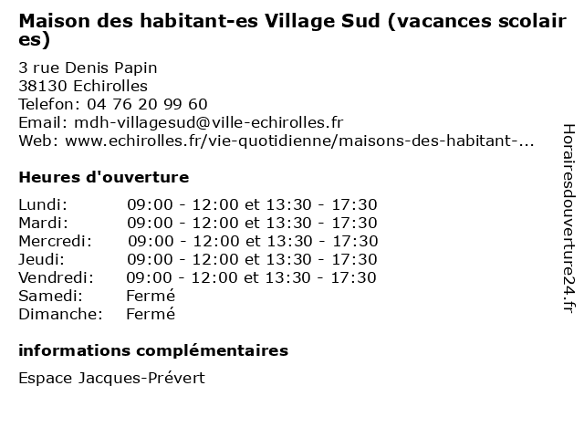 1 Maison des habitant-es Village Sud (Périodes Scolaires) (Distance: 0,00 km) 3 rue Denis Papin, 38130 Echirolles activites, animations, des, es, habitant, hors, maison, projets, périodes, scolaires, services, sud, vacances, village 2 Maison des habitant-es Les Ecureuils/Centre-Est (Distance: 0,63 km) 2 rue Normandie Niemen, 38130 Echirolles activites, animations, des, ecureuils/centre, es, est, habitant, les, maison, projets, services 3 Maison des habitant-es La Ponatière (Distance: 1,60 km) 8 avenue Paul - Vaillant-Couturier, 38130 Echirolles activites, animations, des, es, habitant, la, maison, ponatière, projets, services 4 Maison des habitant-es Anne-Frank/Les Granges (Distance: 2,03 km) 1 rue de Lorraine, 38130 Echirolles activites, animations, anne, des, es, frank/les, granges, habitant, maison, projets, services 5 Maison des habitant-es Surieux (Distance: 2,10 km) 27 place Beaumarchais, 38130 Echirolles activites, animations, des, es, habitant, maison, projets, services, surieux 6 Maison des habitant-es les Essarts (Distance: 2,13 km) - Place de la Convention, 38130 Echirolles activites, animations, des, es, essarts, habitant, les, maison, projets, services |
