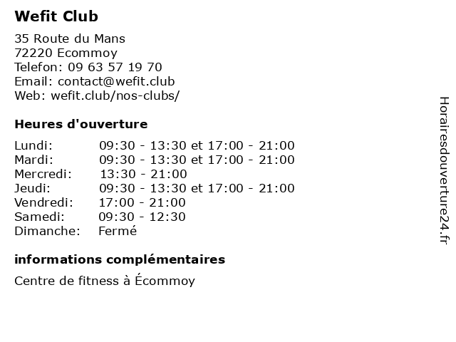 | Mardi | 09:30-13:30 et 17:00-21:00 |