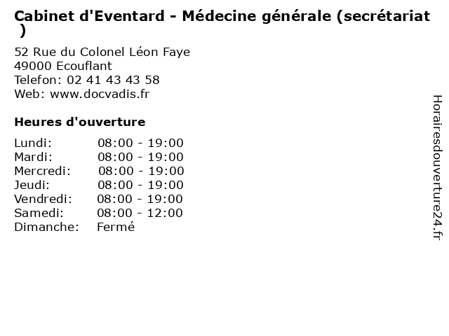 Termes de recherche pour Cabinet d'Eventard - Médecine générale (secrétariat ):cabinet, générale, medecine, santé, secretariat, docteur, consultation, d'eventard |