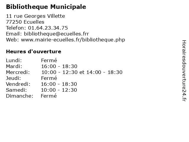 | Mercredi | 10:00-12:30 et 14:00-18:30 |