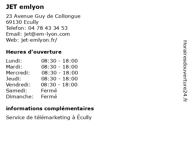 | 1 Jet Tours (Distance: 1,75 km) 18 Avenue Raymond de Veyssière, 69130 Ecully agence, billet d'avion et hôtel pour votre club, jet, séjour, tours, voyage 2 Jet Metal Technologies (Distance: 1,98 km) 4 rue Jean Elysée Dupuy, 69410 Champagne-au-Mont-d'Or décoration, jet, metal, métallisation, procédé, pulvérisation, technologies 3 Jet Tours (Distance: 2,89 km) 3 Place Vauboin, 69160 Tassin La Demi Lune agence, billet d'avion et hôtel pour votre club, jet, séjour, tours, voyage 4 Jet Tours (Distance: 5,25 km) - Cours Oxygene, 69003 Lyon agence, billet d'avion et hôtel pour votre club, jet, séjour, tours, voyage 5 jet modelisme (Distance: 5,85 km) 1 Place Saint-Nizier, 69001 Lyon avion, bateau, jet, modelisme, voiture 6 Jet Tours (Distance: 6,32 km) 81 Rue De La Republique, 69291 Lyon agence, billet d'avion et hôtel pour votre club, jet, séjour, tours, voyage |