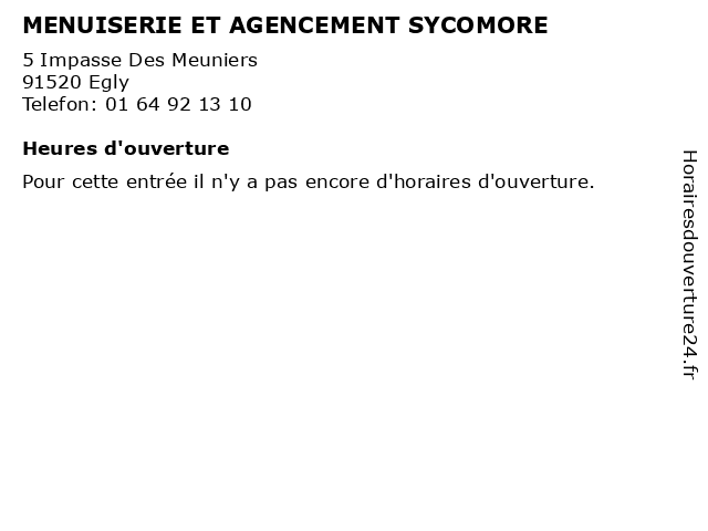 | Appeler MENUISERIE ET AGENCEMENT SYCOMORE | |