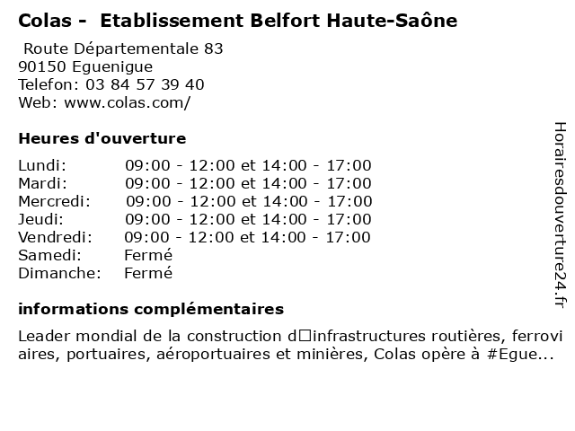 Termes de recherche pour Colas - Etablissement Belfort Haute-Saône:saone, belfort, haute, colas, etablissement, entreprise générale de construction |