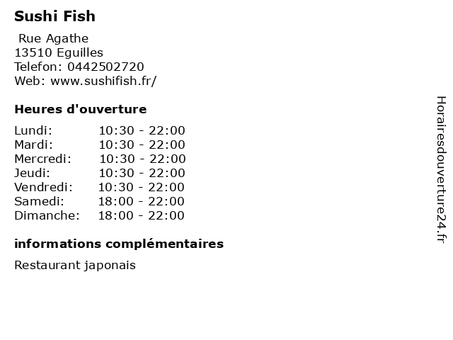 2 Sushi One (Distance: 5,33 km) Magasin Carrefour c c La Pioline, 13290 Aix En Provence one, restaurants, sushi 3 Kiwa Sushi (Distance: 7,05 km) 58 Cours Sextius, 13100 Aix En Provence c2w, kiwa, restaurants, restauration, sushi 4 Nikki Sushi (Distance: 7,73 km) 135 Avenue Fortuné Ferrini, 13080 Aix En Provence japonais, nikki, restaurant, restauration, sushi 6 |
