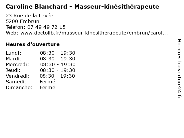 | Jeudi | 08:30-19:30 |