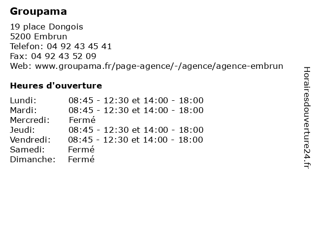 | Lundi | 08:45-12:30 et 14:00-18:00 |