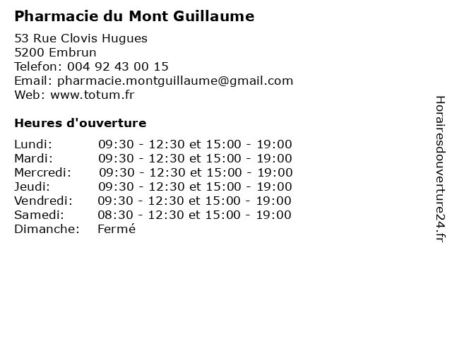 | Mardi | 09:30-12:30 et 15:00-19:00 |
