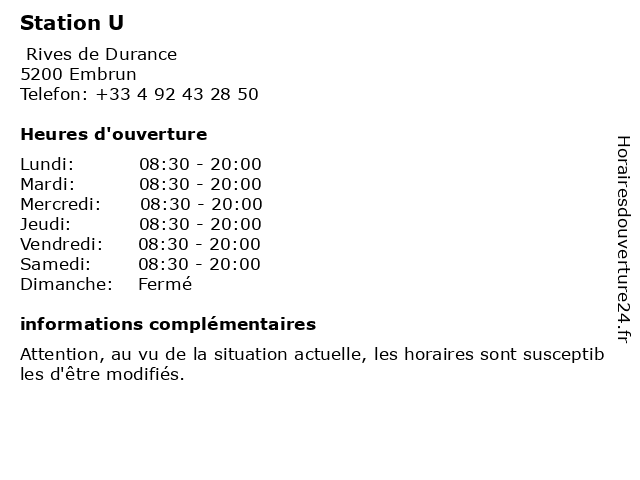 1 TotalEnergies - SARL 3E (Distance: 0,40 km) RN 94 - LE PETIT LIOU, 05200 BARATIER 3e, gas station, sarl, station service, tankstelle, total, totalenergies 2 Intermarché station-service Baratier (Distance: 0,64 km) N94, 05200 Baratier baratier, intermarché, service, station 3 Intermarché station-service Baratier (Distance: 0,65 km) Rn 94, 05200 Baratier baratier, intermarché, service, station 4 Station Avia (libre-service) (Distance: 1,32 km) - Avenue Justin Gras, 05200 Embrun avia, diesel, essence, libre, service, station, voiture 5 Station Avia (caisse et boutique) (Distance: 1,32 km) - Avenue Justin Gras, 05200 Embrun avia, boutique, caisse, diesel, essence, et, service, station, voiture 6 Intermarché station-service Chorges (Distance: 17,10 km) 130 Chemin du pontillas, 05230 Chorges chorges, intermarché, service, station |