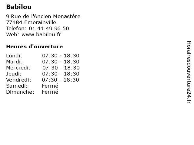 | Lundi | 07:30-18:30 |