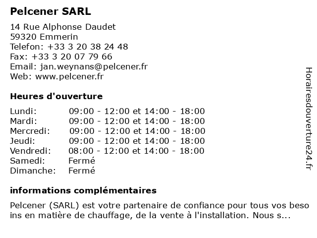 | Lundi | 09:00-12:00 et 14:00-18:00 |