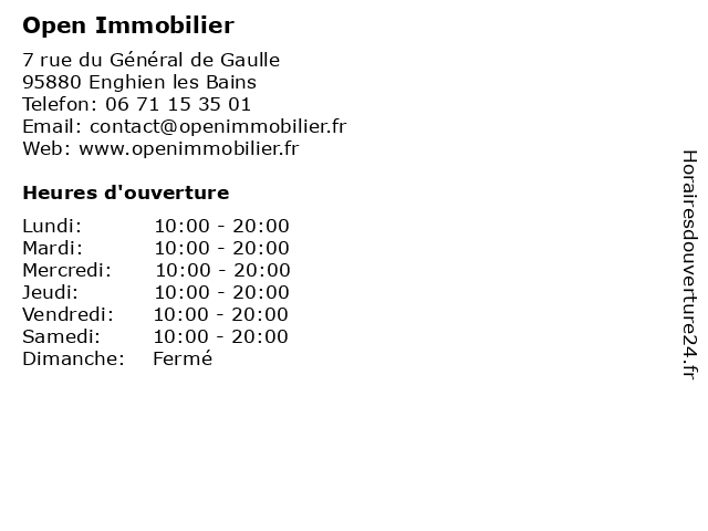 Horaires d'ouverture |