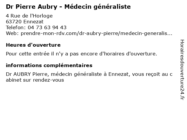 | Appeler Dr Pierre Aubry - Médecin généraliste | |