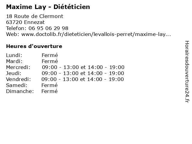 | Mercredi | 09:00-13:00 et 14:00-19:00 |