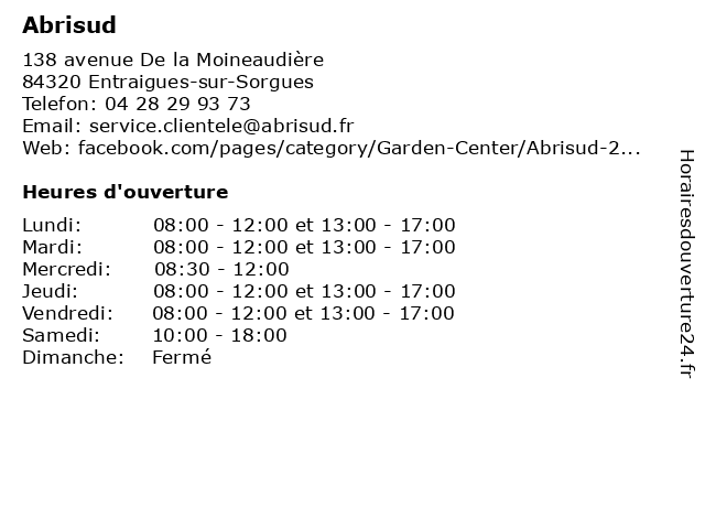 | Mardi | 08:00-12:00 et 13:00-17:00 |