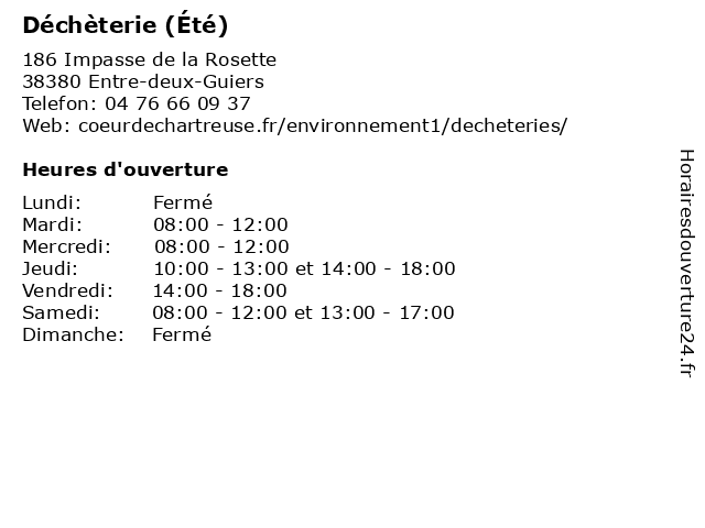 1 Déchèterie (Été) (Distance: 11,53 km) - lieu-dit Le Pilon, 38500 Saint-Nicolas-de-Macherin collecte, déchets, déchèterie, détritus, gravats, tri, été 2 Déchèterie (Été) (Distance: 12,88 km) - route de Saint-Jean, 38500 Coublevie collecte, déchets, déchèterie, détritus, gravats, tri, été 3 Déchèterie (Été) (Distance: 13,57 km) - route départementale 1075, 38500 La Buisse collecte, déchets, déchèterie, détritus, gravats, tri, été 4 Déchèterie (Été) (Distance: 17,46 km) - ZA Valmorge, 38430 Moirans collecte, déchets, déchèterie, détritus, gravats, tri, été 5 Déchèterie (Été) (Distance: 18,49 km) - lieu-dit La Bruyère, 38490 Abrets 01/04, 30/09, au, du, déchèterie, eté, gravats, huiles usées, la réception des déchets et écocentres, les appareils électroménagers, les déchets verts, papier et carton en quantité, été 6 Déchèterie (Été) (Distance: 19,79 km) - route des Terres, 38730 Le Pin collecte, déchets, déchèterie, détritus, gravats, tri, été |