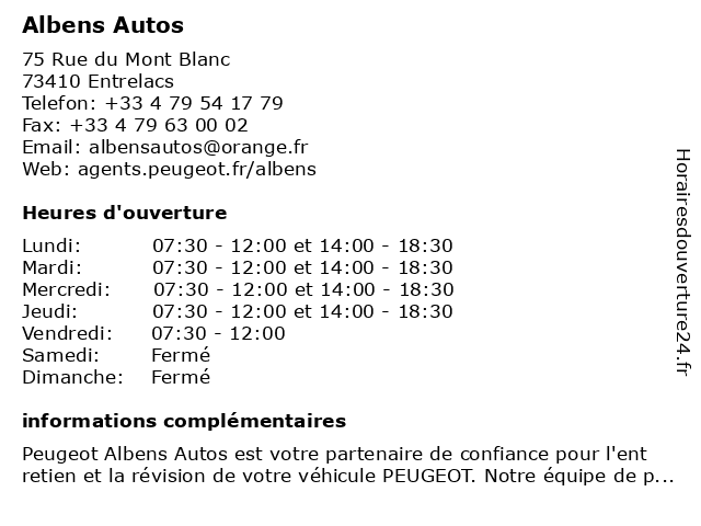 | Lundi | 07:30-12:00 et 14:00-18:30 |