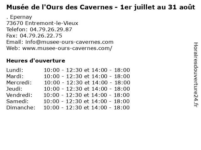| Dimanche | 10:00-12:30 et 14:00-18:00 |