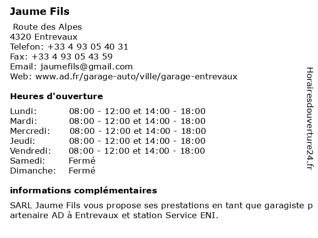 2 Denis Plomberie Fils (Distance: 19,40 km) 88 Rue de la Mairie, 06750 Valderoure denis, fils, plomberie 3 La Chapelle Saint Jaume (Distance: 37,14 km) 1 Rue Maréchal Foch, 06480 La Colle-sur-Loup chapelle, jaume, la, restaurants, saint 4 Pharmacie Saint Jaume (Distance: 54,49 km) 352 Chemin de Saint-Jaume, 83300 Draguignan jaume, pharmacie, saint 5 S Mele Et Fils (Distance: 28,53 km) Etage 1Er, 06620 Gourdon bailleurs, biens, fils, immobiliers, mele, nra 6 Marcel & Fils Bio (Distance: 38,77 km) 44 chemin des Cigales, 83440 Montauroux animal, bio, fils, jardin, jardineries, marcel, végétal |