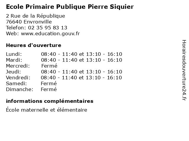 1 Ecole Primaire Publique (Distance: 1,97 km) 586 Route de la Mer, 76640 Cliponville cours, ecole, education, primaire, publique, services, école 2 Tennis Club Valliquervillais - secrétariat (Distance: 5,49 km) 33 Rue de la Mairie, 76190 Valliquerville club, du, d’ouverture, ecole, horaires, secrétariat, tennis, valliquervillais, équipes 3 Ecole Maternelle Publique (Distance: 6,16 km) . Rue de l'église, 76450 Cleuville cours, ecole, education, maternelle, publique, services, école 4 École elémentaire publique - Veauville-lès-Baons (Distance: 6,72 km) 46 impasse de l'école, 76190 Veauville-lès-Baons baons, ecole, education, elémentaire, lès, maternelle, publique, services, veauville, école 5 Ecole Elémentaire Publique (Distance: 6,96 km) . Le Village, 76450 Beuzeville-la-Guérard cours, ecole, education, elémentaire, publique, services, école, élémentaire 6 École Primaire Publique (Distance: 7,03 km) . Place Paul Levieux, 76190 Allouville-Bellefosse allouville, bellefosse, cours, maternelle, primaire, publique, services, École, école |