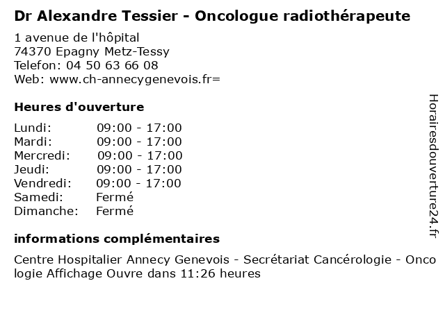 1 Dr Elise Regnier - radiothérapeute (Distance: 0,00 km) 1 avenue de l'hôpital, 74370 Epagny Metz-Tessy cancer, cancérologie, dr, elise, entérologie, gastro, radiothérapeute, regnier 2 Dr Alexandre Agier - Oto-rhino-laryngologiste et chirurgien cervico-facial (Distance: 0,00 km) 1 avenue de l'hôpital, 74370 Epagny Metz-Tessy agier, alexandre, annecy, centre, cervico, chirurgien, dr, et, facial, genevois, hospitalier, laryngologie, laryngologiste, orl, oto, praticien, rhino, service 3 Dr Alexandre Robin - Ophtalmologue (Distance: 0,39 km) 5 Allée de la Mandallaz, 74370 Metz-Tessy alexandre, docteur, dr, generaliste, medical, ophtalmologue, robin, soin 4 Perissoud Alexandre (Distance: 2,54 km) 2 Rue Du 67e Bca, 74000 Annecy alexandre, perissoud, restaurants 5 Alexandre Perchat (Distance: 3,39 km) 6 rue Prèsident Favre, 74000 Annecy alexandre, boulangerie, perchat, pâtisse 6 Dr Alexandre Lesage - Radiologue (Distance: 4,01 km) 4 Chemin de la Tour la Reine, 74000 Annecy alexandre, consultation, docteur, dr, lesage, med, médecin, radiologue, traitement |