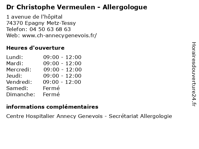 1 Dr Nadège Delavie - Allergologue (Distance: 0,00 km) 1 avenue de l'hôpital, 74370 Epagny Metz-Tessy allergie, allergologie, allergologue, delavie, dr, nadège, pneumologie, pneumologue 2 Dr Vinh-An Huynh - Allergologue (Distance: 0,00 km) 1 avenue de l'hôpital, 74370 Epagny Metz-Tessy allergie, allergologie, allergologue, an, dr, huynh, pneumologie, pneumologue, vinh 3 Dr Laure Bondier - Allergologue (Distance: 0,00 km) 1 avenue de l'hôpital, 74370 Epagny Metz-Tessy allergie, allergologie, allergologue, bondier, dr, laure, pneumologie, pneumologue 4 Dr Christophe Valignat - Urologue (Distance: 0,00 km) 1 avenue de l'hôpital, 74370 Epagny Metz-Tessy andrologie, andrologue, chirurgien, christophe, dr, urologique, urologue, valignat 5 Dr Christophe Richard - Dermatologue (Distance: 0,00 km) 1 avenue de l'hôpital, 74370 Epagny Metz-Tessy boutons, christophe, dermatologue, docteur, dr, liason, richard, venerologue 6 Dr Christophe Roth - Médecine physique et réadaptation (Distance: 0,00 km) 1 avenue de l'hôpital, 74370 Epagny Metz-Tessy christophe, consultation, dr, et, handicap, handiconsult, médecine, physique, roth, réadaptation, spasticité, visio |