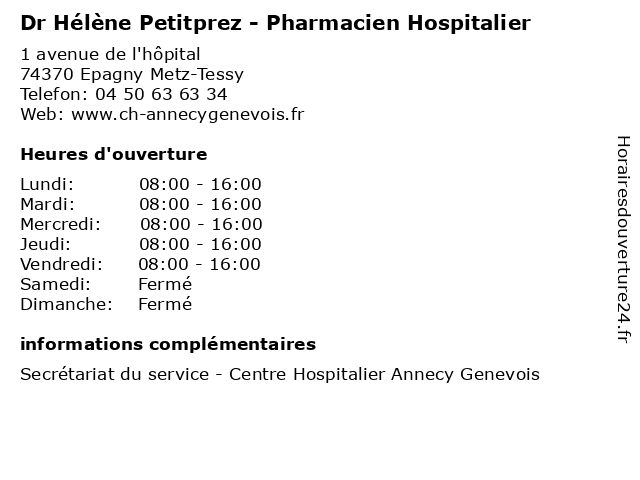 1 Dr Alice Souvignet - Pharmacien Hospitalier (Distance: 0,00 km) 1 avenue de l'hôpital, 74370 Epagny Metz-Tessy alice, analyse, annecy, biochimie, biochismiste, biologie, biologiste, centre, dr, genevois, hospitalier, hématologie, hémostase, laboratoire, pharmacien, service, souvignet, spermiologie 2 Dr Franck Guerin - Pharmacien Hospitalier (Distance: 0,00 km) 1 avenue de l'hôpital, 74370 Epagny Metz-Tessy annecy, cachet, centre, dr, franck, genevois, guerin, hospitalier, medicament, pharmacie, pharmacien, service 3 Dr Gwenaëlle Vary - Pharmacien Hospitalier (Distance: 0,00 km) 1 avenue de l'hôpital, 74370 Epagny Metz-Tessy annecy, cachet, centre, dr, genevois, gwenaëlle, hospitalier, medicament, pharmacie, pharmacien, service, vary 4 Dr Philippe Lourman - Pharmacien Hospitalier (Distance: 0,00 km) 1 avenue de l'hôpital, 74370 Epagny Metz-Tessy annecy, cachet, centre, dr, genevois, hospitalier, lourman, medicament, pharmacie, pharmacien, philippe, service 5 Dr Emeline Pineau-Blondel - Pharmacien Hospitalier (Distance: 0,00 km) 1 avenue de l'hôpital, 74370 Epagny Metz-Tessy annecy, blondel, cachet, centre, dr, emeline, genevois, hospitalier, medicament, pharmacie, pharmacien, pineau, service 6 Dr Magali Farines-Raffoul - Pharmacien Hospitalier (Distance: 0,00 km) 1 avenue de l'hôpital, 74370 Epagny Metz-Tessy annecy, cachet, centre, dr, farines, genevois, hospitalier, magali, medicament, pharmacie, pharmacien, raffoul, service |