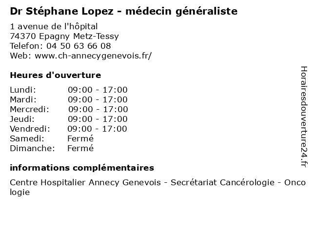 1 Dr Stéphane Hominal - Pneumologue-cancerologue (Distance: 0,00 km) 1 avenue de l'hôpital, 74370 Epagny Metz-Tessy cancer, cancerologue, cancérologie, dr, entérologie, gastro, hominal, pneumologue, stéphane 2 Dr Stéphane Fol - Coronarographie - Angioplastie (Distance: 0,00 km) 1 avenue de l'hôpital, 74370 Epagny Metz-Tessy angioplastie, cardio, cardiologie, cardiologue, coeur, coronarographie, dr, fol, stéphane 3 Dr Stéphane Vigier - Médecine physique et réadaptation (Distance: 0,00 km) 1 avenue de l'hôpital, 74370 Epagny Metz-Tessy consultation, dr, et, handicap, handiconsult, médecine, physique, réadaptation, stéphane, vigier, visio 4 Dr Stéphane Bland - Médecin biologiste (Distance: 0,00 km) 1 avenue de l'hôpital, 74370 Epagny Metz-Tessy analyse, annecy, bactériologie, biochimie, biochismiste, biologie, biologiste, bland, centre, dr, genevois, hospitalier, hygiène, laboratoire, médecin, parasitologie, service, stéphane 5 Stéphane Blain - Pédicure-podologue (Distance: 2,31 km) 20 Avenue de Genève, 74000 Annecy blain, consultation, docteur, med, médecin, médecine, podologue, pédicure, secrétariat, stephane, stéphane, traitement 6 Stéphane Gérard - Masseur-kinésithérapeute (Distance: 2,50 km) 43 Route de Frangy, 74960 Meythet consultation, docteur, gérard, kinésithérapeute, masseur, med, médecin, médecine, secrétariat, stéphane, traitement |