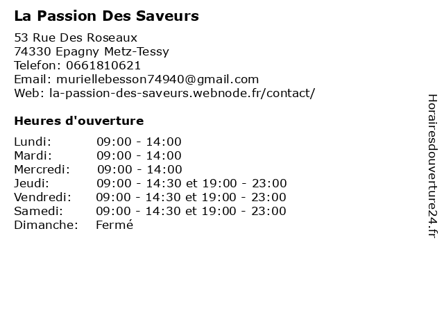 | Samedi | 09:00-14:30 et 19:00-23:00 |
