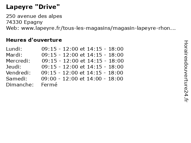 3 Auchan Drive (Distance: 0,37 km) . Rue du Commerce, 74330 Epagny auchan, beaute, decoration, drive, maison, mode femmes, mode hommes, restaurant, sante, service, sport 4 Auchan Drive (Distance: 0,56 km) 180 Rue de la Bottière, 74330 Epagny auchan, drive, hypermarche, marche, market 5 Casino Supermarché Drive (Distance: 3,31 km) 50 avenue du Palerman, 74960 Annecy alimentation, casino, distribution, drive, epiceries, supermarché 6 Carrefour Drive (Distance: 3,86 km) 134 Avenue de Genève, 74000 Annecy carrefour, drive, hypermarche, marche, market |
