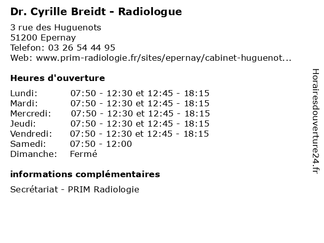 1 Dr. Cyrille Breidt - Radiologue (Distance: 20,15 km) 89 rue Louis Victor de Broglie, 51430 Bezannes breidt, consultation, cyrille, docteur, dr., med, médecin, médecine, radiologue, traitement 2 Dr. Damien Breidt - Radiologue (Distance: 20,15 km) 89 rue Louis Victor de Broglie, 51430 Bezannes breidt, consultation, damien, docteur, dr., med, médecin, médecine, radiologue, traitement 3 Dr Damien Breidt - Radiologue (Distance: 23,37 km) 14 bis avenue du 29 Aout 1944, 51430 Tinqueux breidt, consultation, damien, docteur, dr, med, médecin, médecine, radiologue, traitement 4 Dr Cyrille Breidt - Radiologue (Distance: 23,37 km) 14 bis avenue du 29 Aout 1944, 51430 Tinqueux breidt, consultation, cyrille, docteur, dr, med, médecin, médecine, radiologue, traitement 5 Dr. Damien Breidt - Radiologue (Distance: 23,42 km) 22 rue Simon, 51100 Reims breidt, consultation, damien, docteur, dr., med, médecin, médecine, radiologue, traitement 6 Dr. Cyrille Breidt - Radiologue (Distance: 23,42 km) 22 rue Simon, 51100 Reims breidt, consultation, cyrille, docteur, dr., med, médecin, médecine, radiologue, traitement |