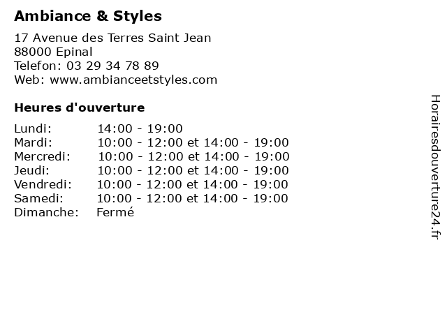 | Samedi | 10:00-12:00 et 14:00-19:00 |